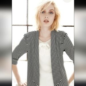 MELISSA NEPTON black And White Striped Open Front Cardigan. Size Small