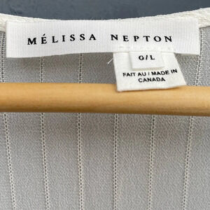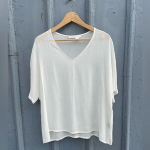 MELISSA NEPTON sheer white V neck blouse loose fit, size Large