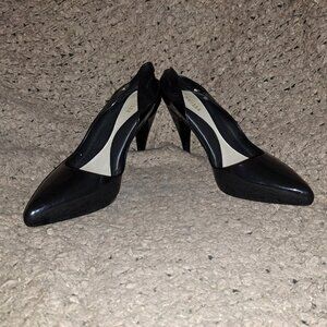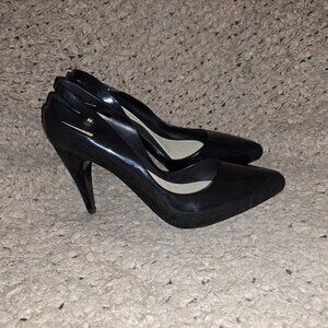 The stiletto heel measures 3.75" high and the foot bed
