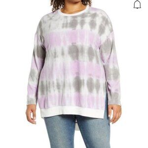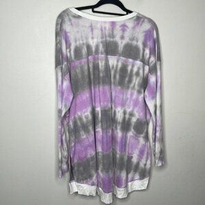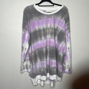 MELLODAY Tie Dye Tunic Sweatshirt In Purple Combo NWT