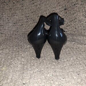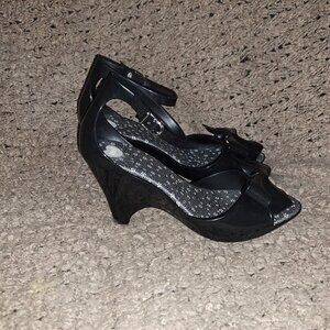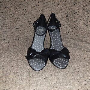 MEL-MELISSA-Apple Ribbon-Black Jelly Wedges/Bow/Peep Toe-Sz 8-Near Mint