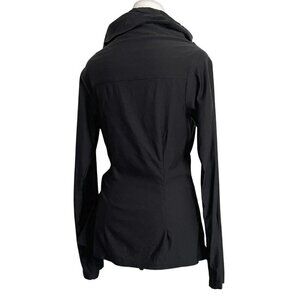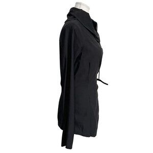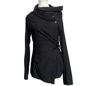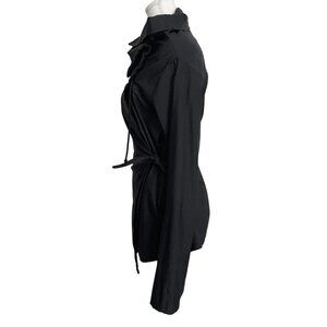 MELOW BY MELISSA BOLDUC ISABEAU HIGH NECK TIE WAIST JACKET IN BLACK - S - As described by MELOW website : Our iconic asymmetrical jacket returns this summer to enhance all your outfits. Thick stretch cotton jacket that adjusts to the waist from the inside. Its asymmetrical cut and the strings that create beautifuls formals effects at the collar make it a key piece in the Melow collection.