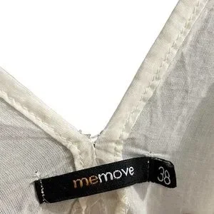 MEMOVE Cotton Embroidered V-Neck Popover Blouse White Blue 38