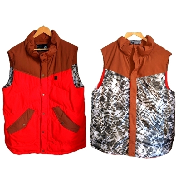 MEN ORAGE Reversible Red & Abstract Print Puffer Sleeveless Vest Extra-Large