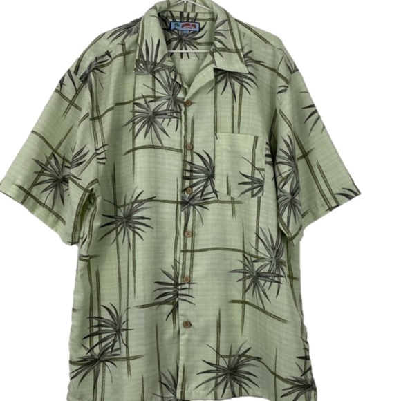 MEN'S Aloha Joe Hawaiian shirt green with bamboo style overall print size large