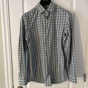Non-iron slim fit shirt from Banana Republic. Colors are green, blue and white. Has been worn, so will shown signs of use but is clean and ready for a new home!