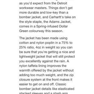 MENS CARHARTT ADAM BOMBER JACKET SIZE SMALL RUGGER COOL HIGH QUALITY BOMBER JACKET BY CARHARTT AS EXPECTED. A STUNNING MASCULINE BOMBER FOR ANY OCCASION.