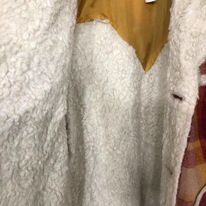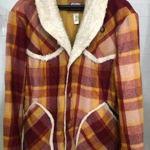 MENS DIESEL VINTAGE ICONIC WORACE SHERPA PLAID PEACOAT SIZE XL.