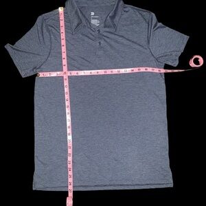 All In Motion mens golf polo. Grey/blue-grey in color with 3-button placket and tag-less collar. Soft, stretchy Polyester-rayon material. In excellent, clean pre-loved condition. Mens size MEDIUM.