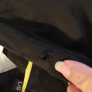 - hood quality hoodie in pre-owned condition but there are a few flaws: hole on the hood where the string feeds through, there is also a small hole on the kangaroo pocket, and one on the corner of the kangaroo pocket , see pics