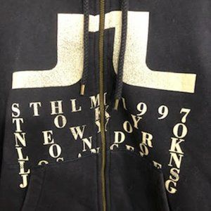 MENS J LINDEBERG STOCKHOLM SWEDEN LUXE ICONIC ZIP UP LOGO HOODIE