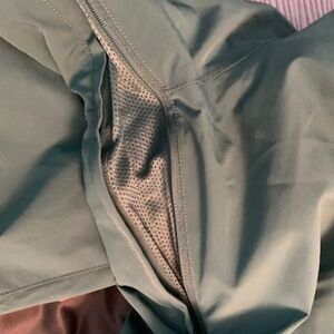 Spruce green & orange (trim & accents) ski jacket. Barely worn. Side vents, interior google pocket with cleaning cloth, lots of pockets, snow bib and pant attachment. Water resistant and rated for winter sports (cold weather).
