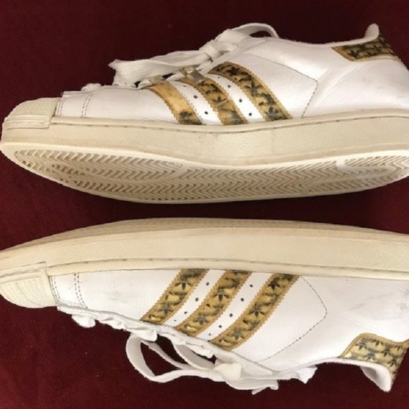 MENS SIZE 11 ADIDAS SUPERSTAR GOLD & WHITE RUNNING SHOES