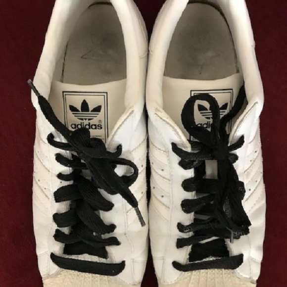 MENS SIZE 11 ADIDAS SUPERSTAR WHITE & BLACK RUNNING SHOES