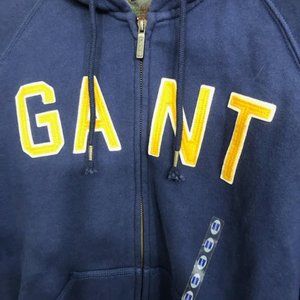 HOODIE FEATURES A ZIP UP FRONT WITH GANT DETAILING IN THE FRONT AND GNH ON BACK OF HOOD WHICH IN SHORT MEANS GANT NEW HAVEN.