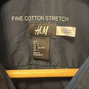 MENS H&M 5 Cotton Stretch Navy Blue Long Sleeve Button Up Dress Shirt L