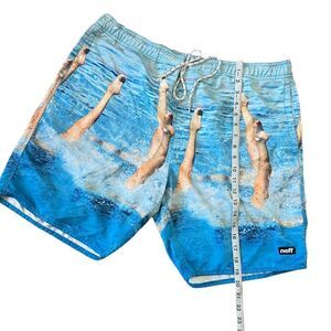 MENS NEFF Blue Printed Elastic Waist Lightweight Loose Fit Board Short XL