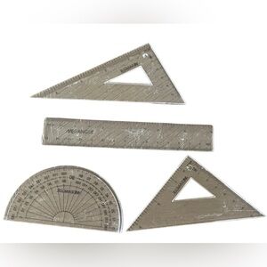 Precision meets style in this sleek red MERANGUE geometry set. Perfect for students, artists, architects, and anyone who loves clean lines and accurate angles. Includes all the essentialsācompass, protractor, ruler, and set squaresāneatly packed in a durable transparent case. Whether youāre tackling homework or sketching designs, this set keeps your tools organized and your work sharp.