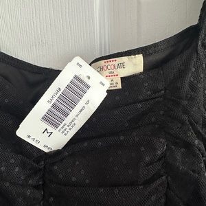MESH RUCHED SHIRRED TOP. Black. New with tags
