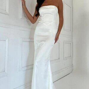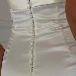 A little bit romantic. Designed to be a timeless classic, the KAITLIN is a Strapless Gown that's perfect for brides looking to keep with tradition. Boning bodice. silk material. Button back - size Small