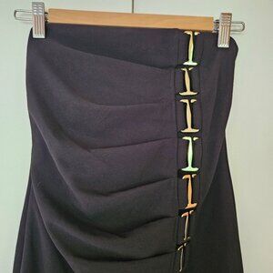 MESHKI MERCER E-Hook Midi Dress in Black Bandeau Strappless Dress XS
