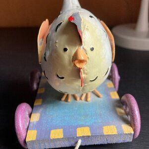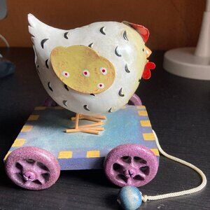 METAL COLLECTABLE GANZ CHICKEN ON wheels by innovation "MES AMIS" VINTAGE PULL TOY