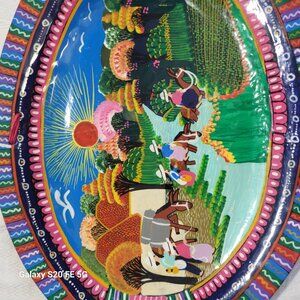 This beautiful Mexican Folk Art Fish Platter is a stunning addition to any home. Hand-painted on terra cotta Mexican red clay, this platter measures 14" x 9.5" and is perfect for displaying as a unique piece of art. The vibrant colors and intricate design showcase the rich cultural heritage of Mexico. Crafted with care in Mexico, this platter is a collectible piece of art that will surely impress your guests. Use it as a decorative tray in your living space. The authentic craftsmanship and materials make this piece a true treasure.