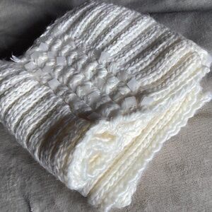 MEXX CREAM THICK PLUSH KNIT SCARF WITH EMBELLISHED HEM DETAIL