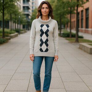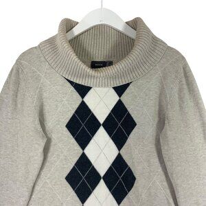 MEXX Gray Argyle Cowl Neck Pullover cotton Sweater beige Women size large