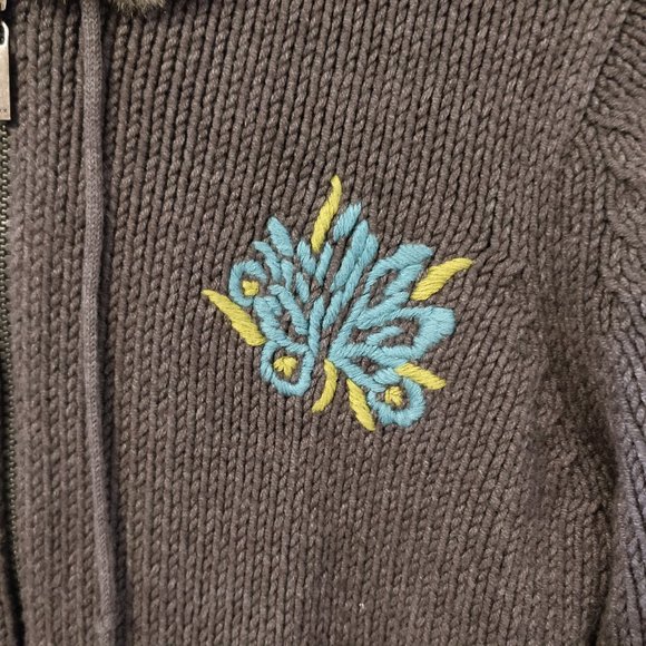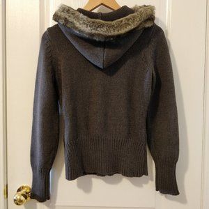Lovely soft knit sweater by Mexx with zipper and faux fur lined hood.