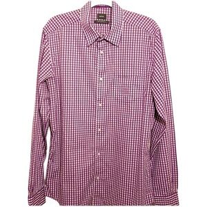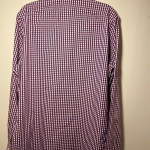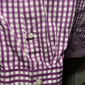 Men’s long sleeve Mexx semi slim fit button down shirt in white with purple check. 100% cotton. Fits slim so best for size Large or a trim XL. Like new.