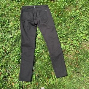 Jeans look like leather in the front, but are a clever imitation which is stretchy, while the back is a stretchy woven fabric