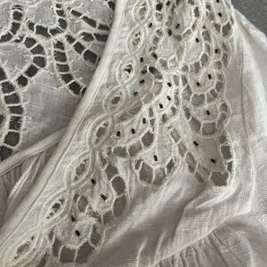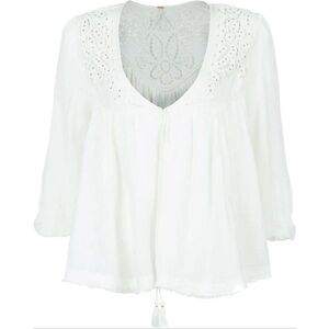 [M]Free People Cream Doin’It Right Embroidery Detail Babydoll Cotton Blend Top