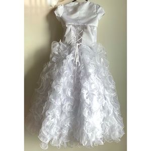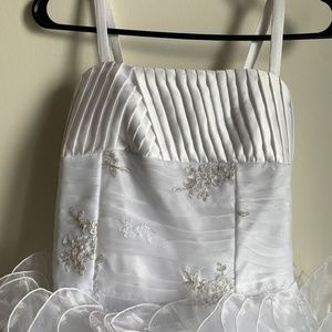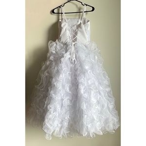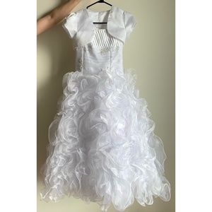 MGK FASHION INC. White Ruffle Ball Gown W/ Mini Coat Size Girls 14/Women 0 (GUC)