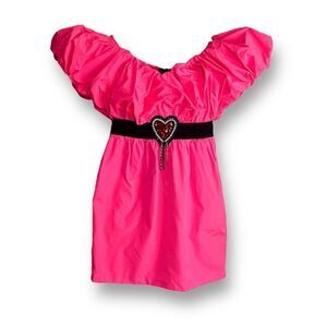 MGSM Neon Pink Off Shoulder Heart Dress, Small