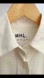 In excellent condition, menswear-inspired shirt in crisp, cotton off white canvas like material with a slanted chest pocket.