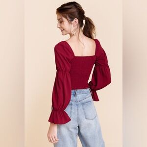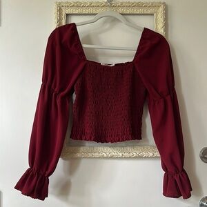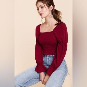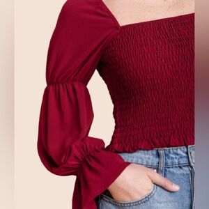 MI AMI | Elegant Burgundy Smocked Long Puff Sleeve Top