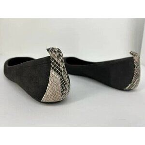 MIA BNWT black faux suede casual flats sz 6 back animal print panel