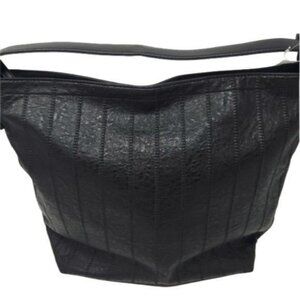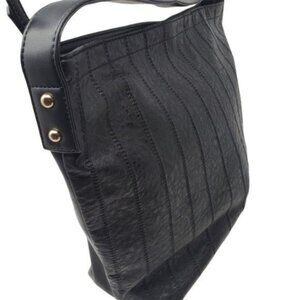 • Spacious black bag with gold toned elements on knobs and zipper slider