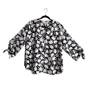 MICHAEL KORS 3/4 sleeve v neck Shadow Floral blouse black white Nearly New Sz XL
