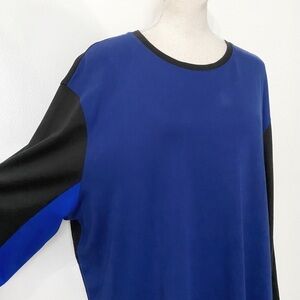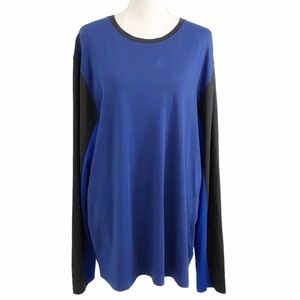 MICHAEL KORS BLACK BLUE NAVY COLOR BLOCK CREW NECK COTTON LONG TEE TOP - 2XL