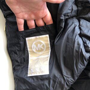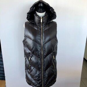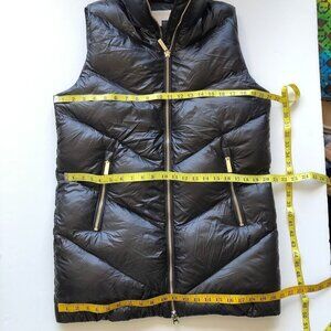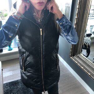 MICHAEL KORS Black Quilted Puffer Hoodie Vest Long Tunic Length high neck Gold S