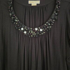 MICHAEL KORS Black Scoop Neck Beaded Short Sleeve Top 1X