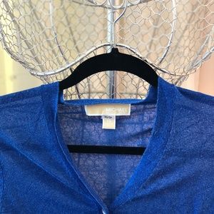 Royal blue crop button-up sweater by Michael Kors. Light fabric for spring with 2/3rds sleeves. Totally wash and wear and a lovely shade of blue to brighten up any outfit.