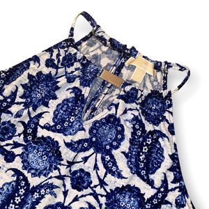 MICHAEL KORS Blue Floral Keyhole Jersey Halter Top