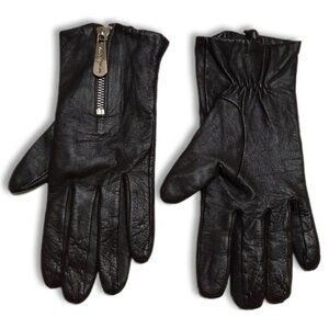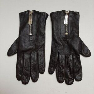 MICHAEL KORS Classic Leather Gloves Dark Brown w/ Zipper Detail Sz M
