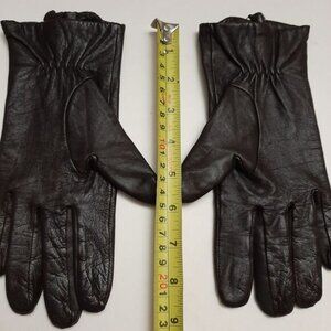 • Classic women's gloves in dark brown buttery soft leather with zip details and thin cozy fleece lining.