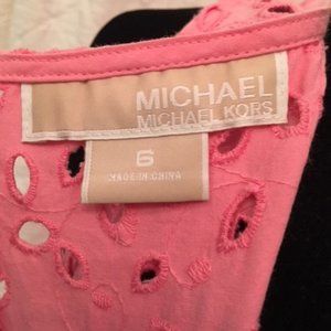 Super cute Michael Kors pink eyelet babydoll sleeveless summer dress size 6. Worn twice (maybe). Pretty pink eyelet with white cotton lining.