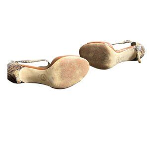 MICHAEL KORS Guiliana Faux Snake Skin Tan Leather Open Toe Sandal Heels US 6