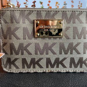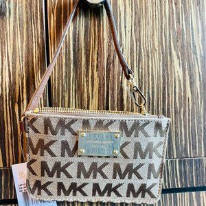 BRAND NEW, NEVER USED classic Michael Kors Jacquard wristlet and wallet. Known as the JET SET. Ideal compact size to fit what you need on-the-go. Perfect condition; the traditional brown MK monogram logo; a piece that never goes out of style.
